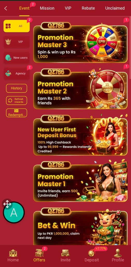 QZ786 Game has a referral system where users invite their friends to register and play the game to earn commissions and bonnusses. This feature make this app special and increase its popularity among users.